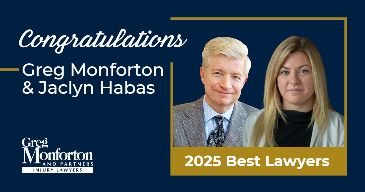 Congratulations to Greg Monforton for his inclusion in the 2025 Edition of the Best Lawyers in Canada for Personal Injury Litigation – Plaintiffs. Greg has been selected for this honour each year since 2006!