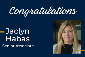 Please join us in congratulating Jaclyn Habas on this well-deserved advancement!